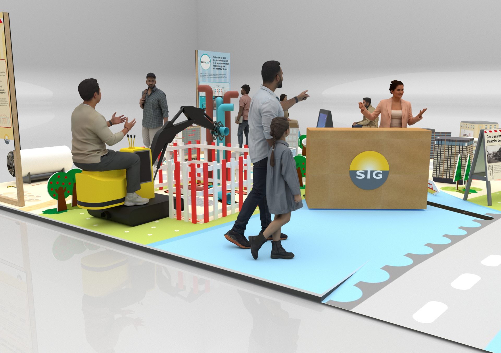 Stand — Pour la deuxième fois consécutive, les SIG ont confié à EtienneEtienne la création de leur stand aux Automnales de Genève.